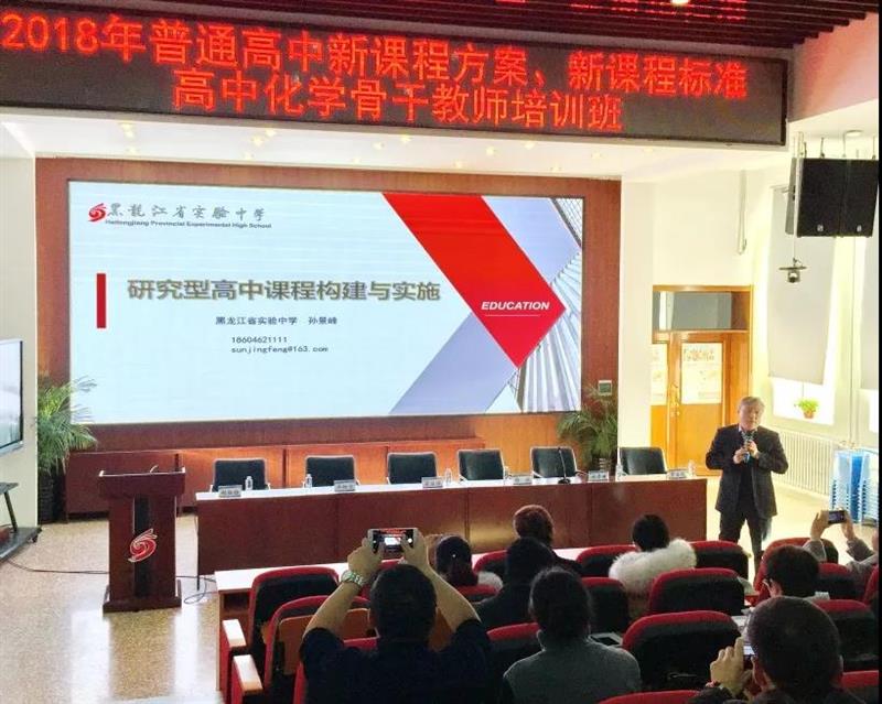 12月6日,“2018年全省普通高中新课程方案、新课程标准高中化学骨干教师培训”在我校举行,我校孙景峰校长、符丽萍书记应邀出席培训班的开幕式并讲话。开幕式及培训会由省教研员许虹宇老师主持,省教育学院郭颢主任出席开幕式并讲话,教研员曹亚风老师、赵淑梅老师出席开幕式。 孙校长做讲座 孙景峰校长首先应邀为来自全省各地的教研员、骨干教师进行了培训讲座。孙校长重点阐述了如何从培养目标、办学理念、办学目标等学校顶层设计出发进行课堂实践和课程建设,介绍了我校课程开发的经验和实例,并用详实的案例分析阐述了我们的课堂教学理念和“问题化学习+pad教学”的探索成果,还分享了我校中加实验班的课程开发和综合素质评价经验。 讲座结束后,由6位老师带来8节精彩的现场课、说播课展示。我校张平老师进行了示范课展示,随后又进行了说播课展示和介绍。孙博文老师进行了说课展示。