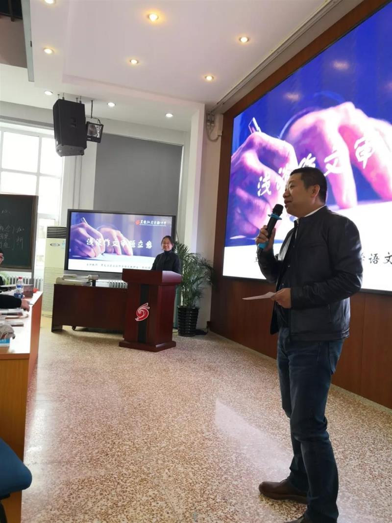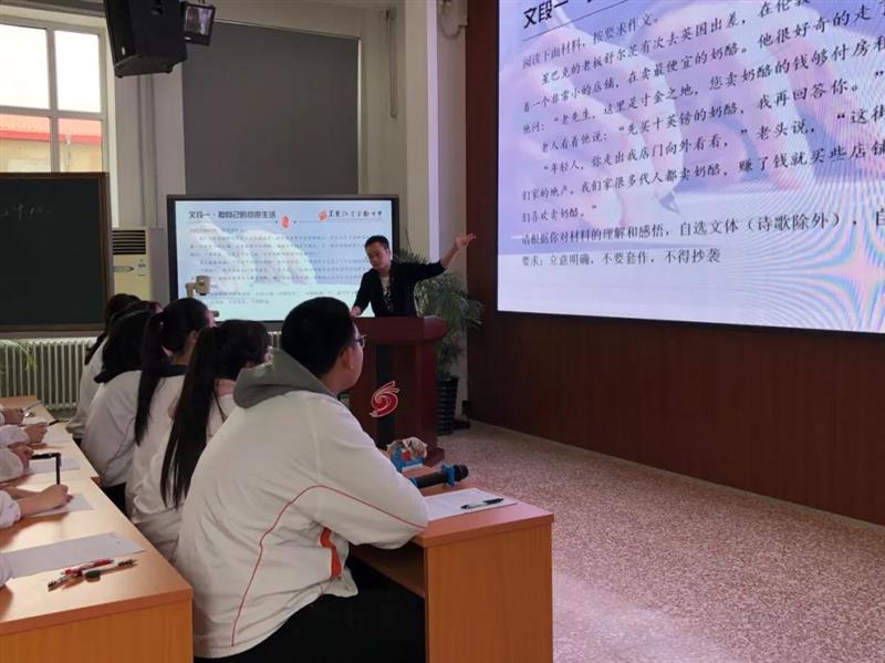 2018年10月23日下午一点,哈尔滨市教研院在我校召开了以高考作文备考为主题的高三复习教研活动。同时,省实验中学高三学年一轮复习研讨课系列活动也揭开序幕 教研活动由黑龙江省实验中学语文教研室主任季春光老师主持; 吕彭丰智老师从教学实践的角度,以一节作文研讨课为示范,就如何“使用素材”和“表达中心”做了作文升格训练的展示; 高三备课组长高兆强老师从备课组的角度就常规训练方式作了经验介绍; 张晓东、张晓婧两位老师分别从作文的结构和作文审题立意的角度进行了分析。 本次教研活动参与教师,除哈尔滨地区的教师外,还吸引了来自牡丹江地区的同行,阶梯教室座无虚席。