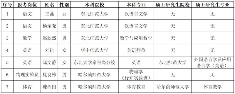 按照《黑龙江省事业单位公开招聘工作人员实施细则》的规定,根据《黑龙江省实验中学关于招聘工作人员的公告》明确的招聘原则、程序和方法,现将拟聘用人员予以公示。