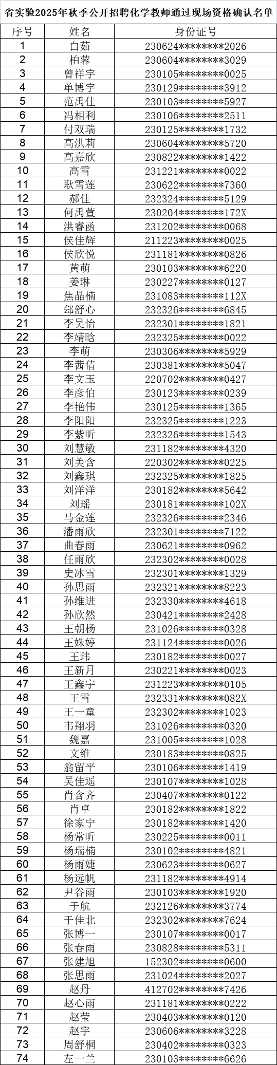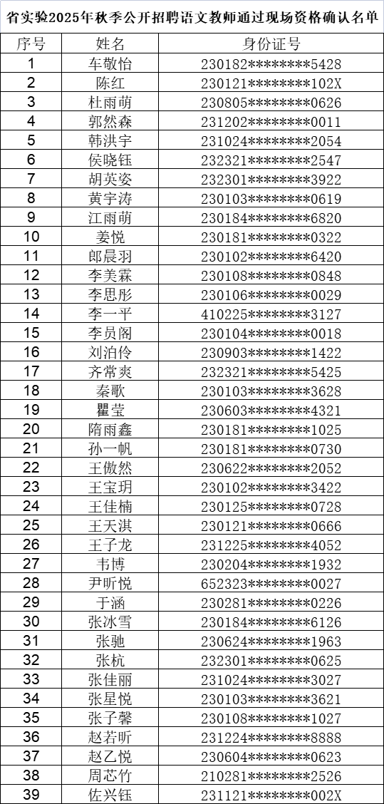 截止到2025年10月17日16:00,我校2025年秋季公开招聘工作人员资格审查工作已经结束,现将资格审查结果公告如下: